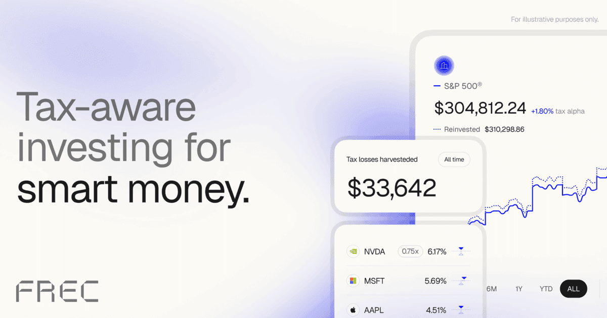 We believe everyone deserves access to better and smarter ways to manage their money. At Frec, we are transforming complex financial products that have traditionally only been available through wealth advisors into automated, easy-to-use technology. Get more with direct indexing. Borrow against your portfolio with lines of credit. Earn high interest on your cash with Treasury.