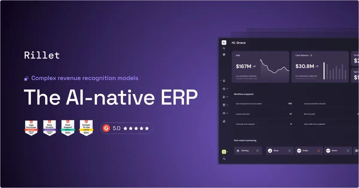Rillet is the first accounting platform made to tailor fit the workflows of accountants and a full replacement for legacy ERPs like NetSuite and Sage Intacct. Scaling and hyper-growth companies like BitWarden, Windsurf and Postscript use Rillet to enable a smarter close with native integrations, automated journal entries and AI embedded workflows.